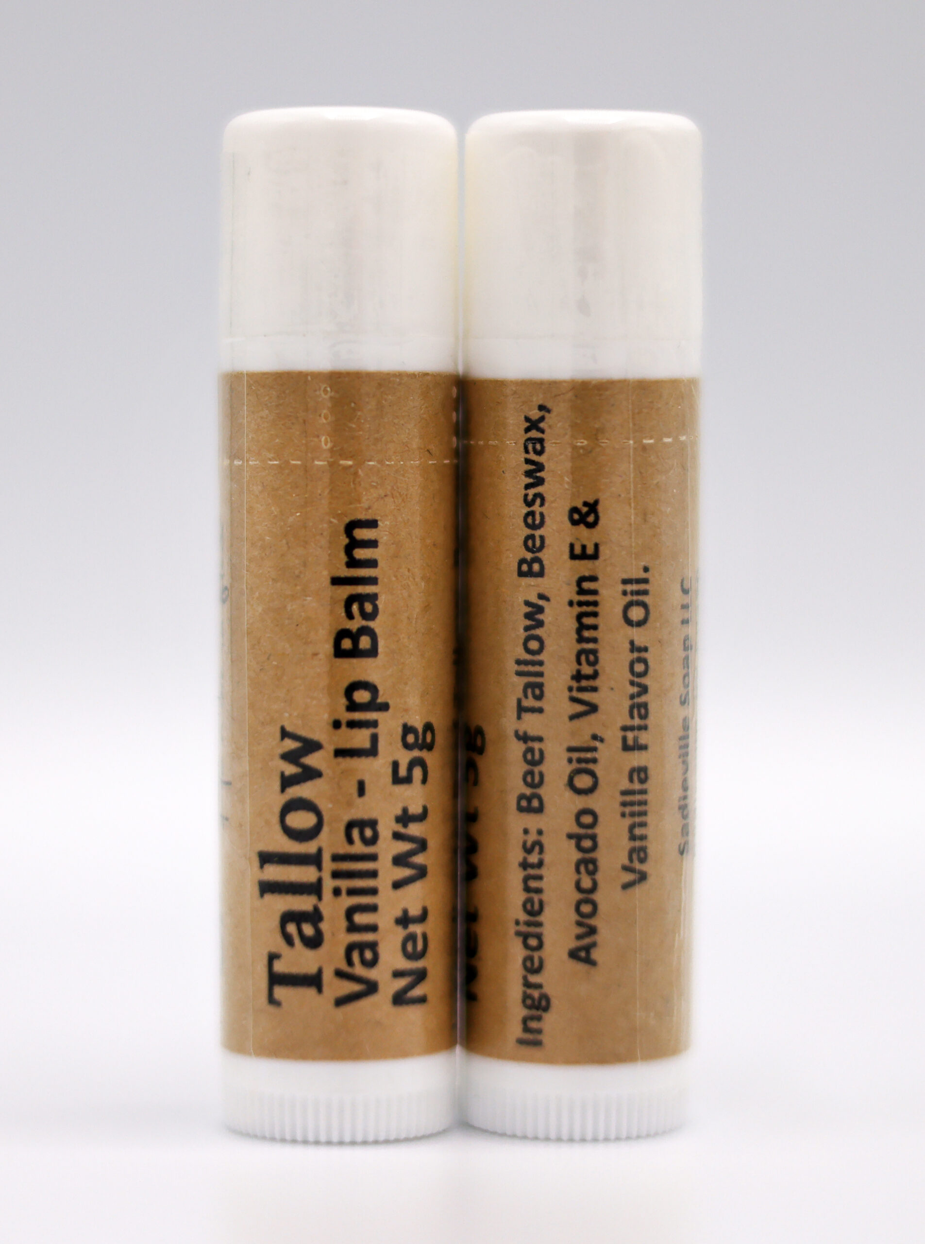 A creamy, handcrafted lip balm with vanilla flavor and tallow. 5 g.
